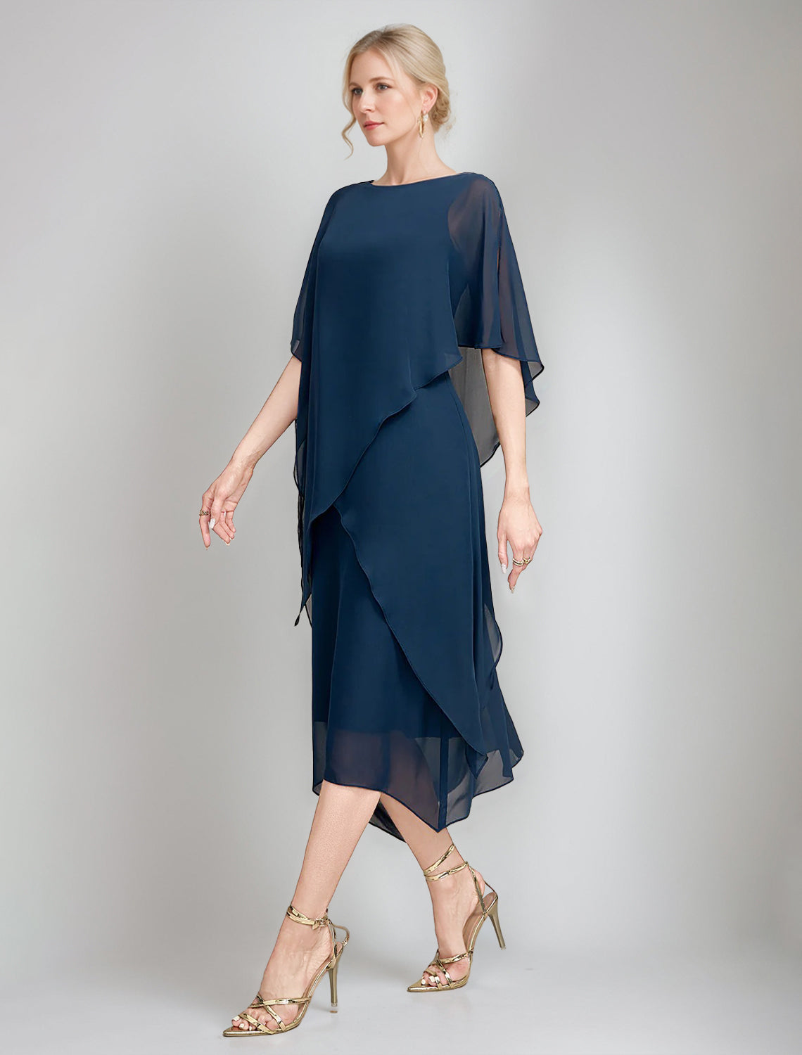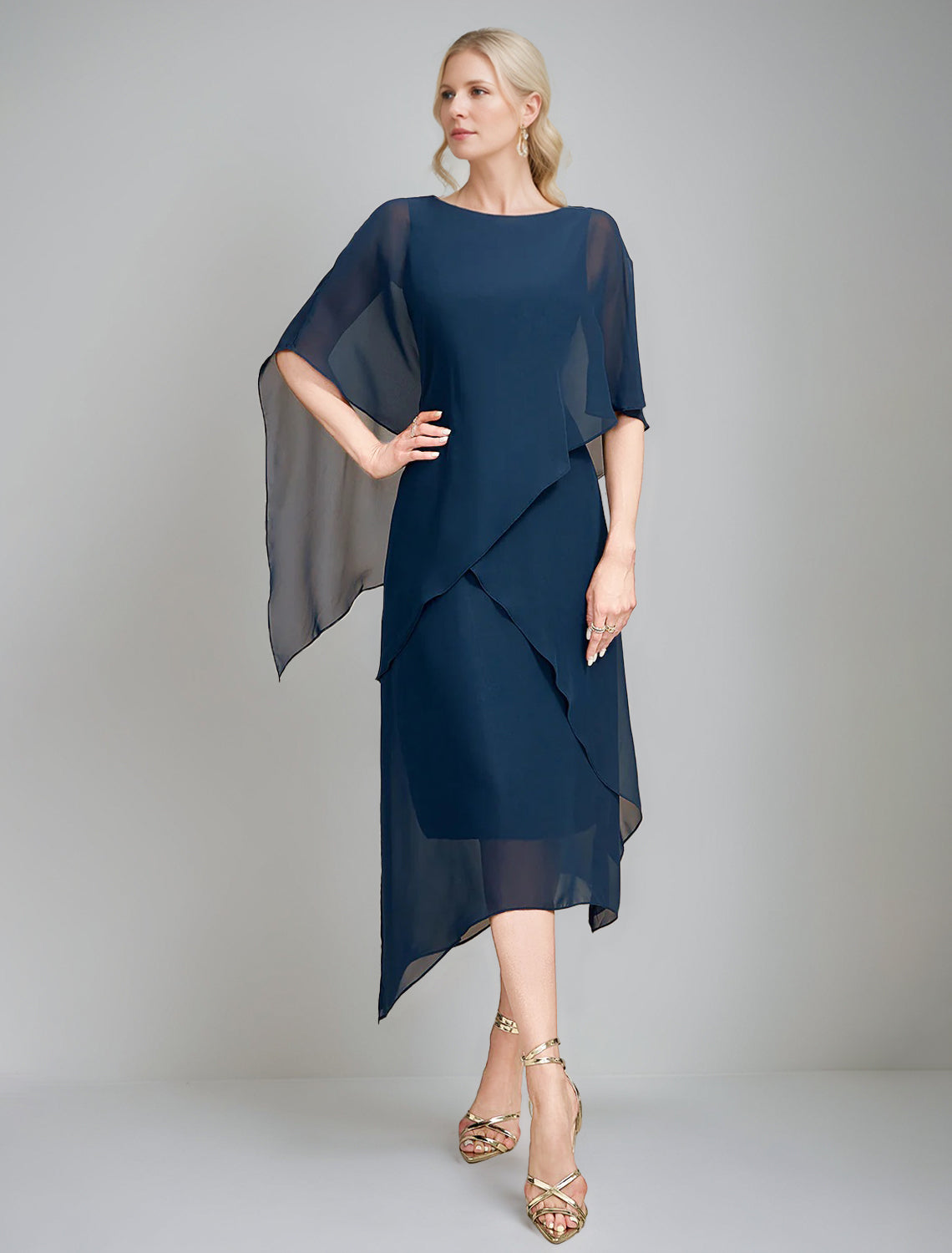 A-Line/Princess Jewel Neck Cape Sleeves Asymmetrical Mother of the Bri